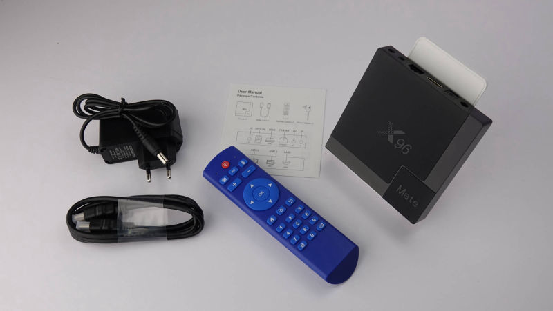 В комплектации поставляется ИК-пульт дистанционного управления необычного синего цвета, HDMI кабель, блок питания и краткое руководство пользователя.